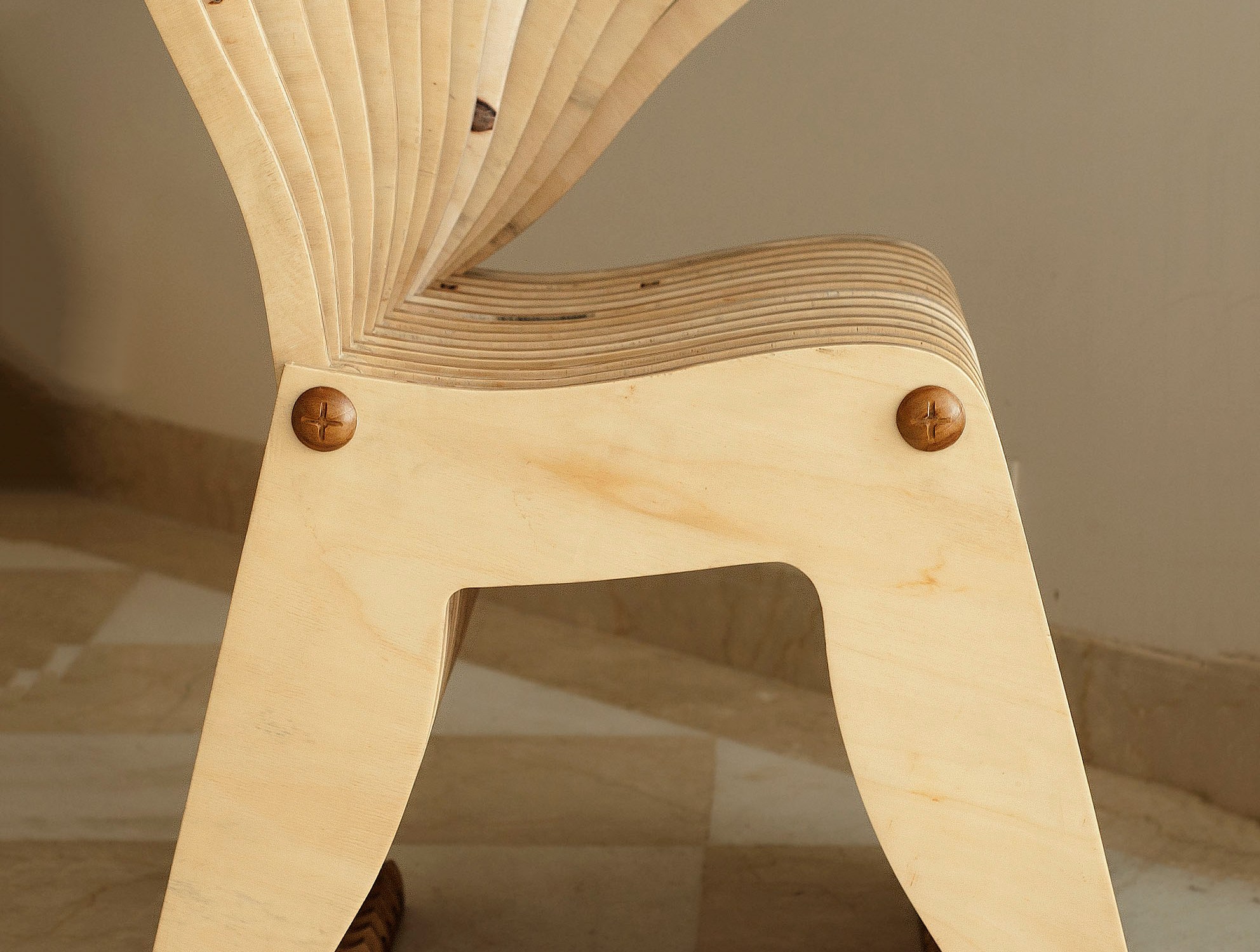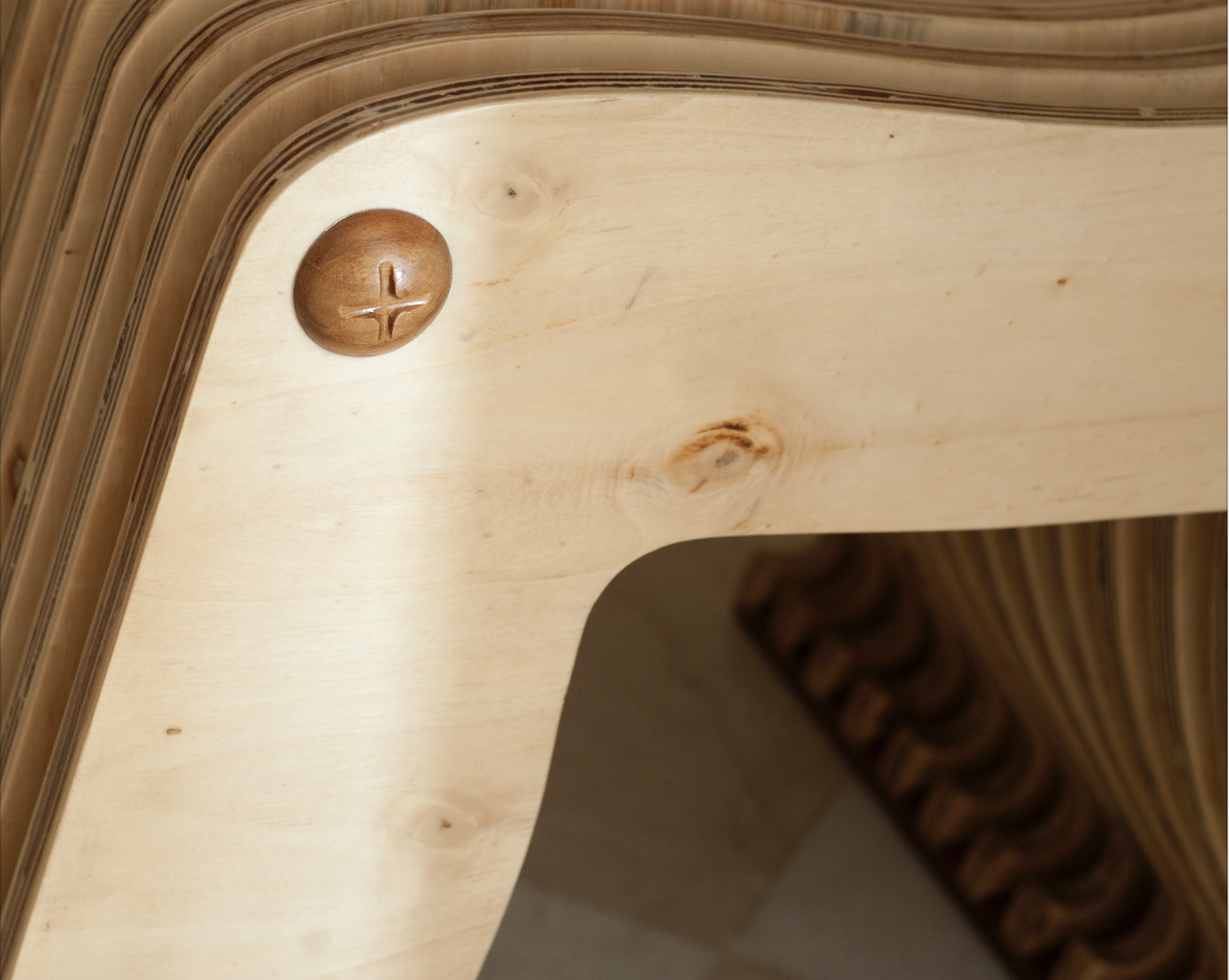 The Piano stool/chair is a playful yet highly engineered chair which can be folded down to a stool or propped up into a chair in an interactive method of moving the back support up or down. When needed the backrest in the chair creates a perfect recline for a comfortable posture without the use of any hardware. Detailed wooden screw and dowel system support the layers and movements within the chair.