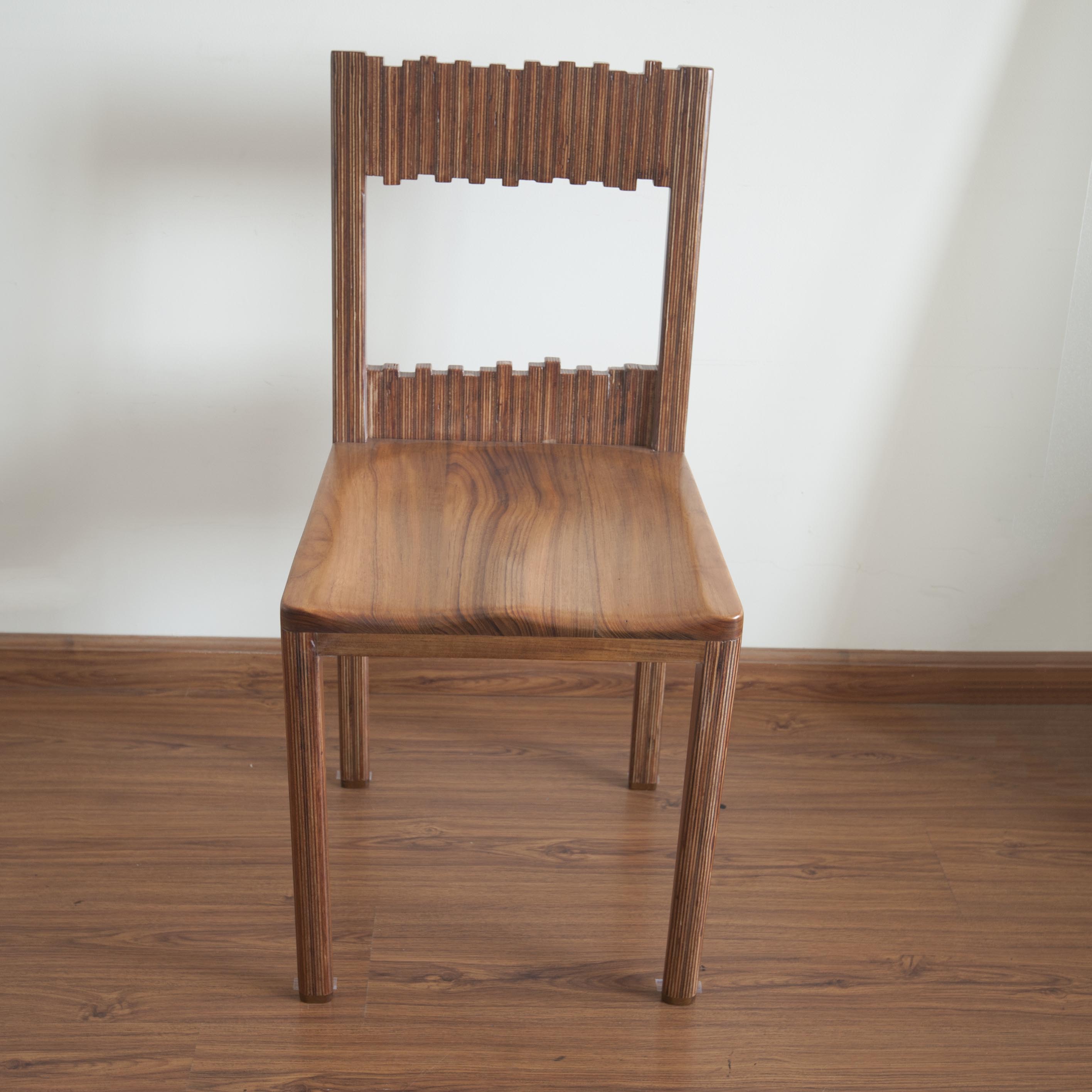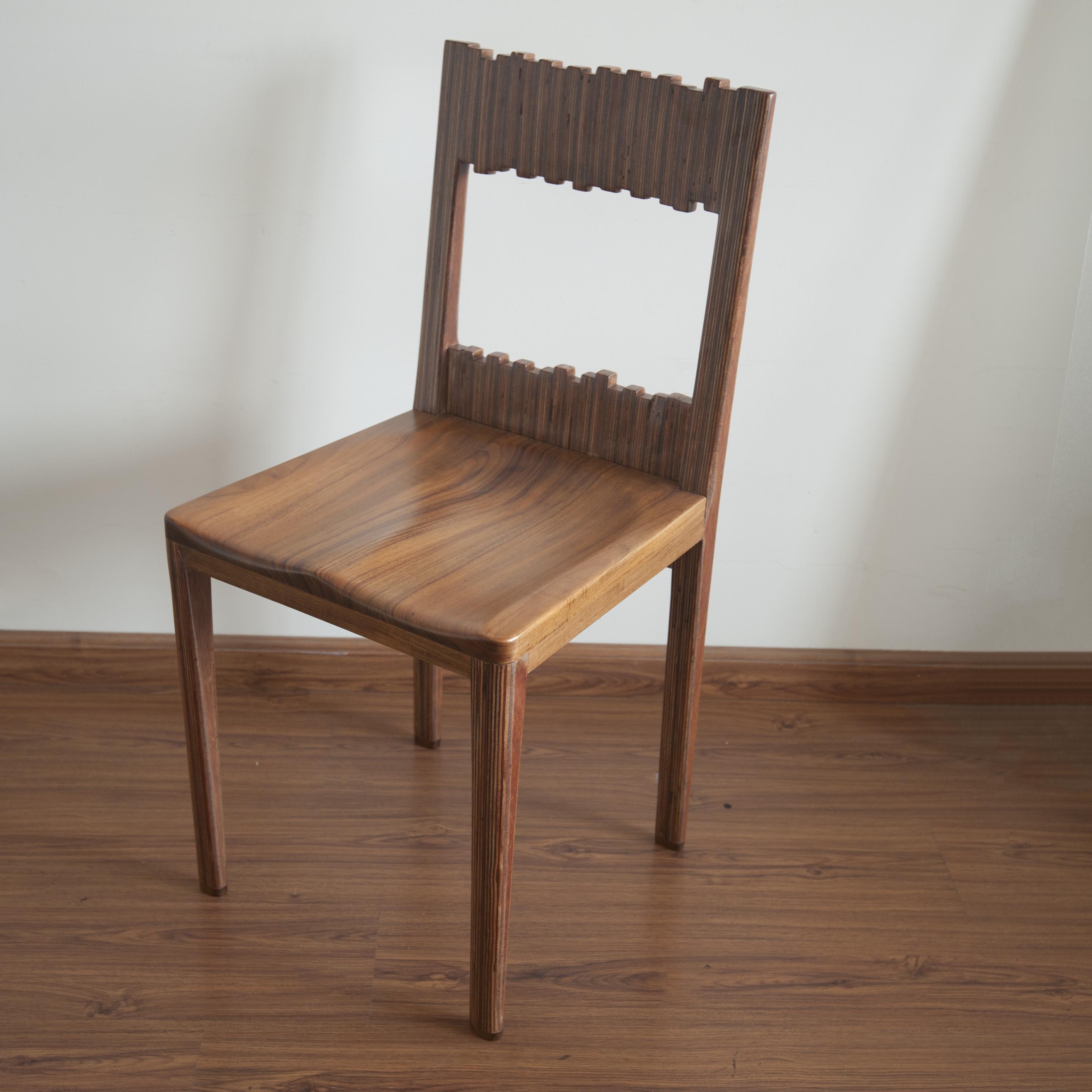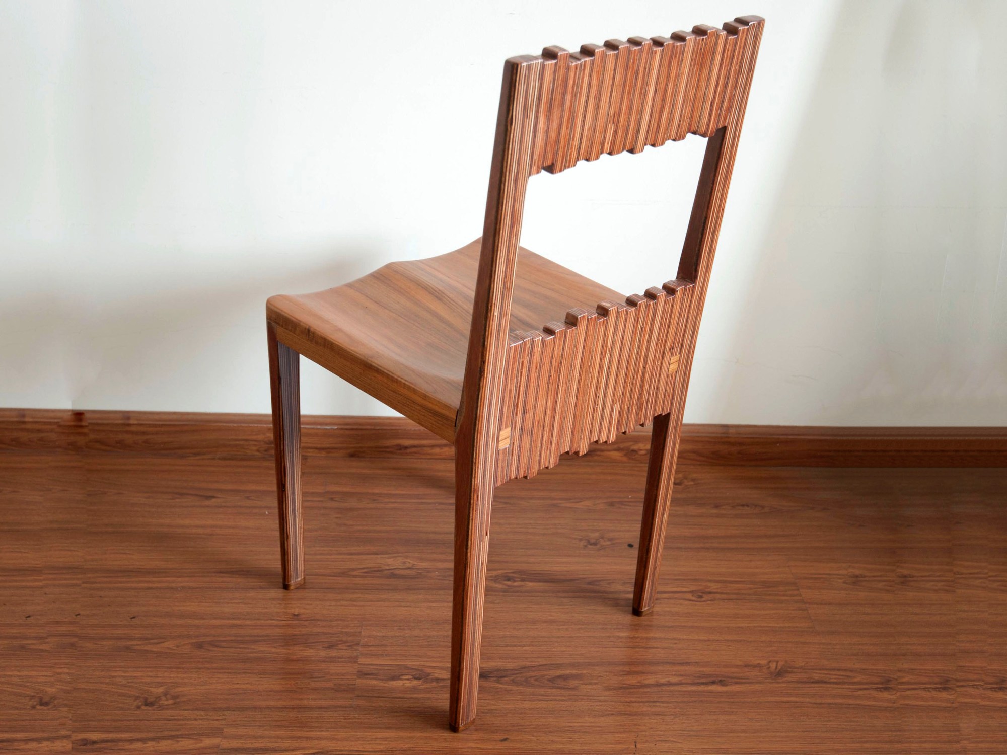 The skyline chair is an airy yet structurally sound lightweight chair. it can be used as a dining chair as well as a desk chair. The back and shoulder support mimic the varying heights of a cities skyline. The solid teak seat is carved out to effortlessly support the body and solid teak aprons create a structural base for the entire chair.