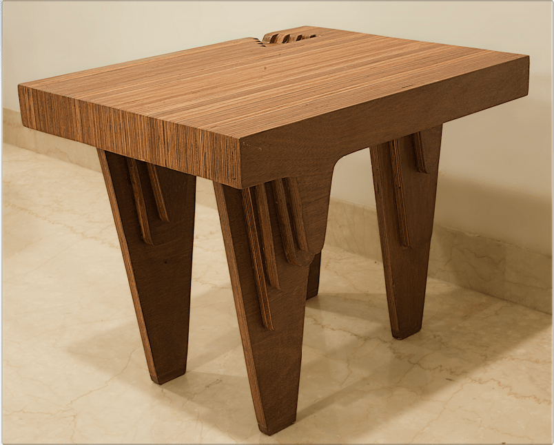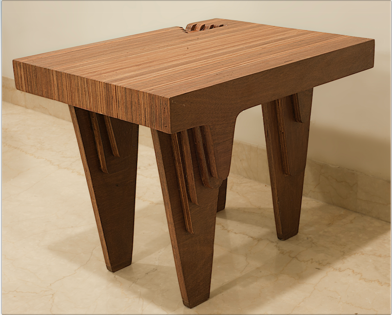 The layered popsicle table comprises of four legs dripping down to support the top. The Exposed plywood top adds an interesting intricacy to the simplistic rectangular form. A triangular shape mimicking the dropping nature of the leg adds a little detail to tie the whole piece together.