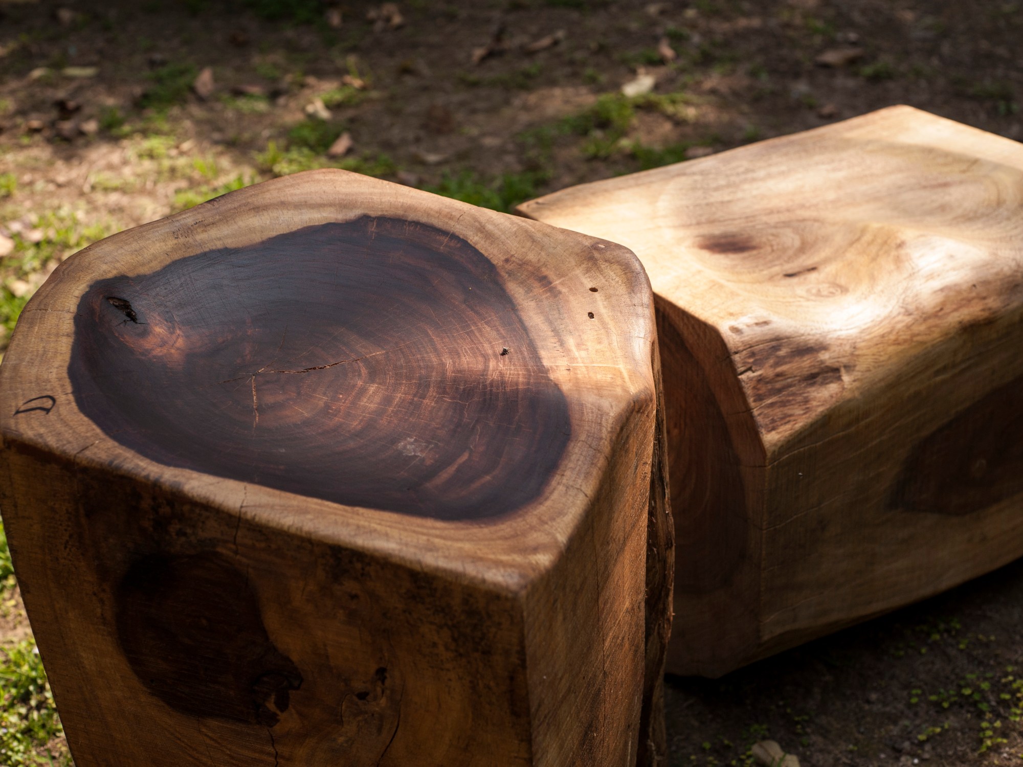 The stump stool have been created out of solid stumps of rosewood. The strong nature of this wood makes it ideal for placing outdoor. The seats have been scooped out to contour the body for an added comfort.